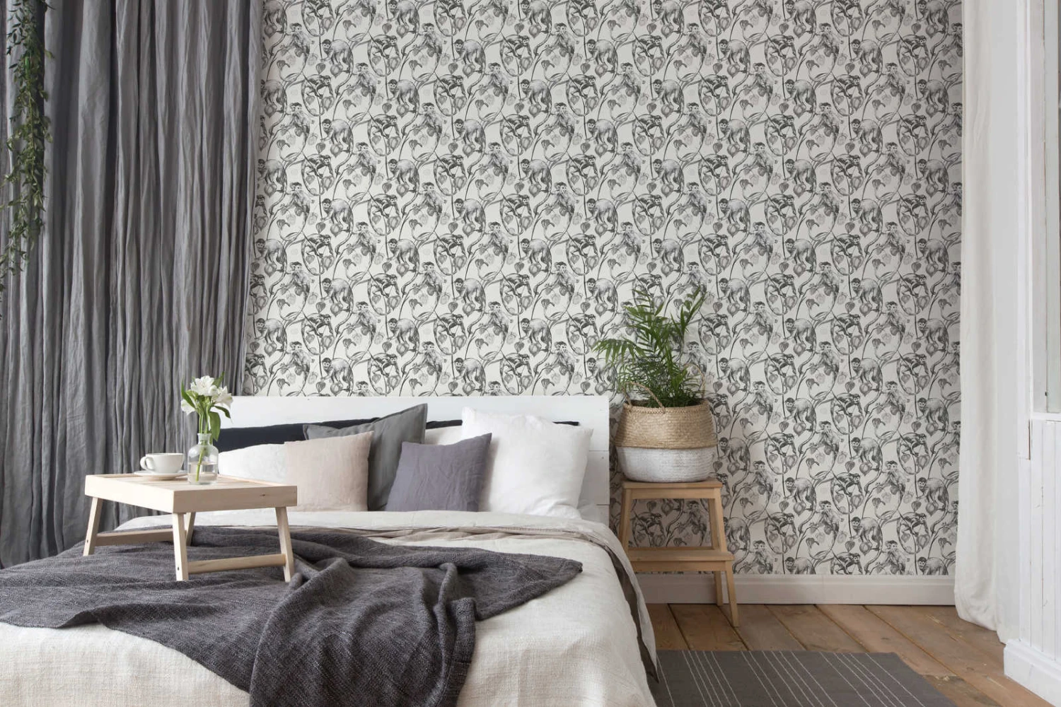 Vliestapete Michalsky Living Dschungel Affen weiß grau 37982-1 | 379821