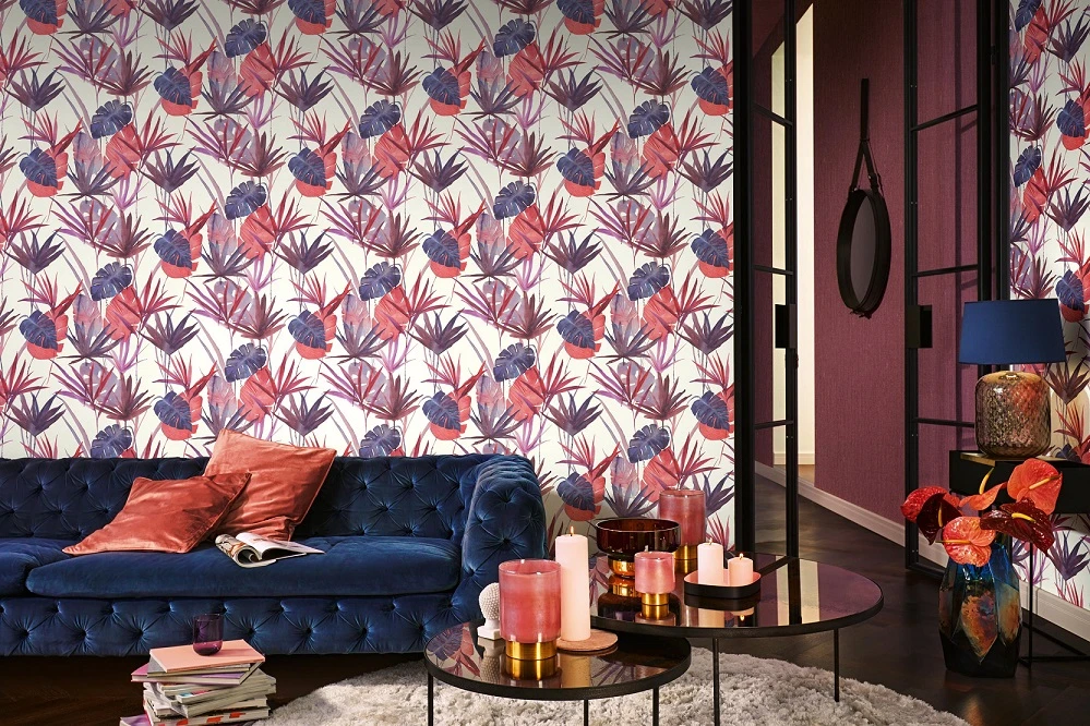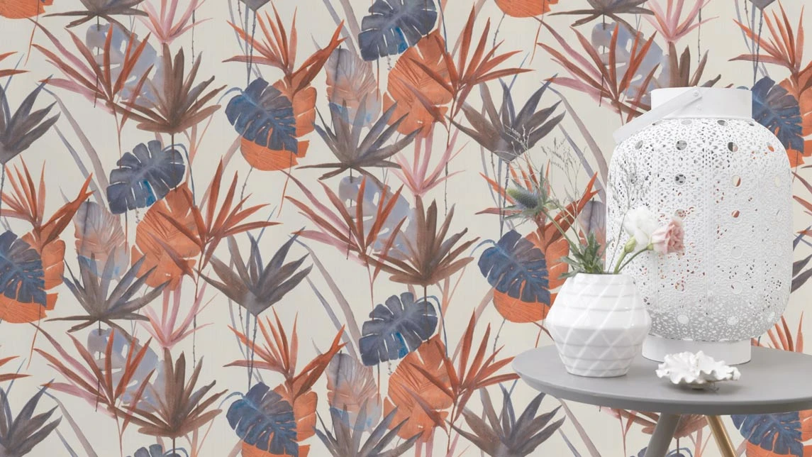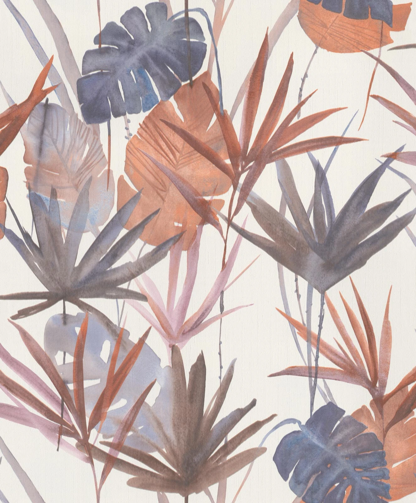 Barbara Home Vliestapete Blätter Weiß Blau Rot 536430