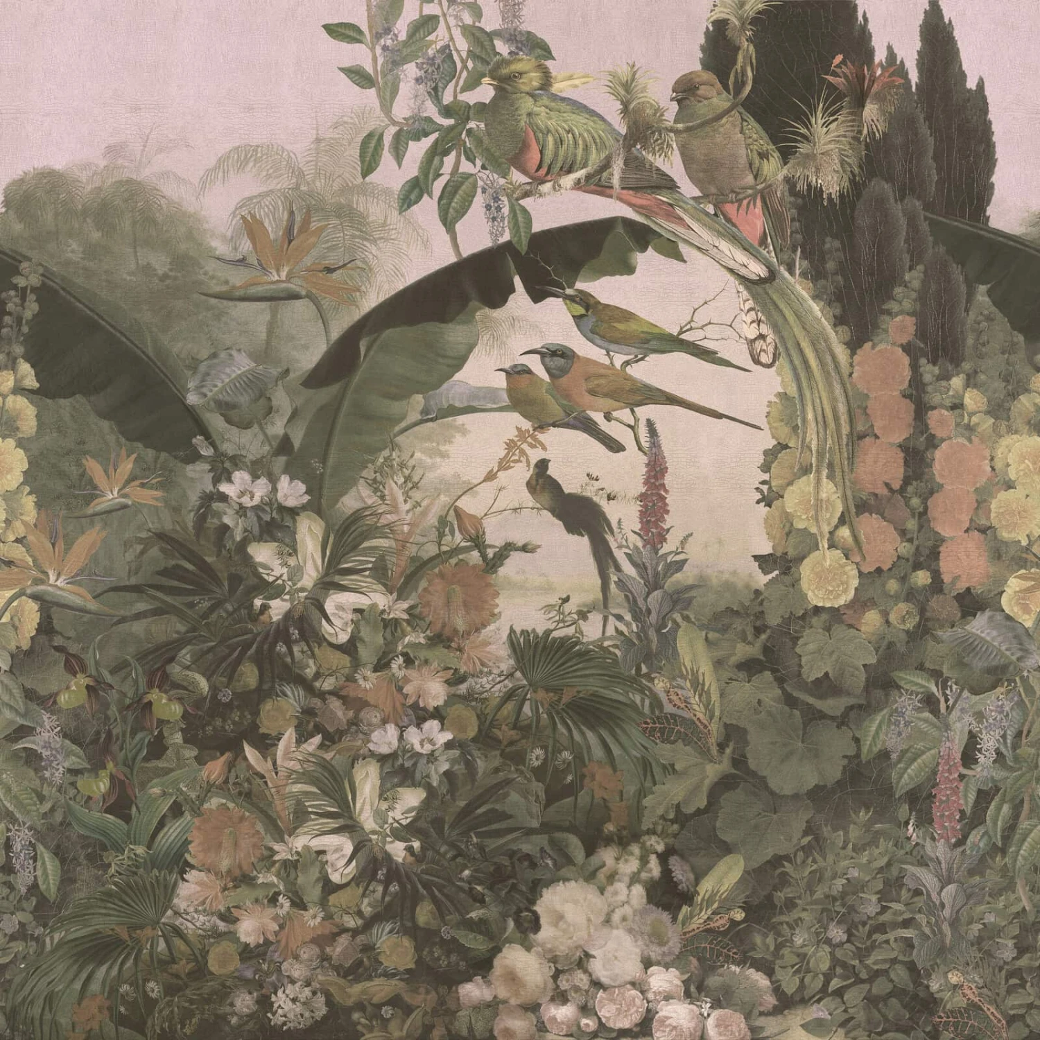 Fototapete Barbara Home Collection Vögel Blumen Rosa