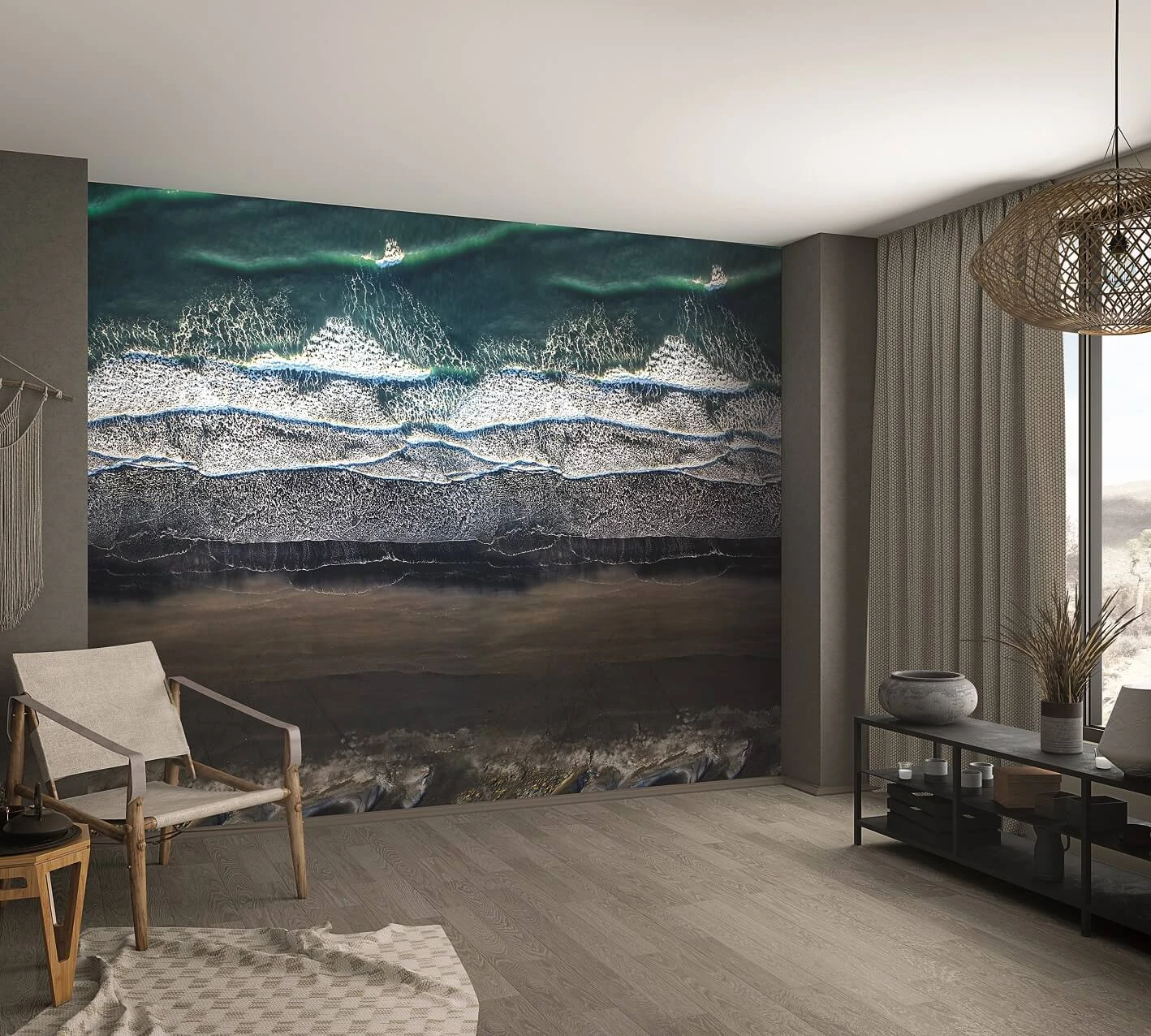 Der Digitaldruck 32546 aus der Kollektion „Dune“ von Marburg mit Wellen, die sich am Strand brechen ist ein optisches Highlight und bringt durch sein Design eine angenehme Ruhe in deine eigenen vier Wände.
