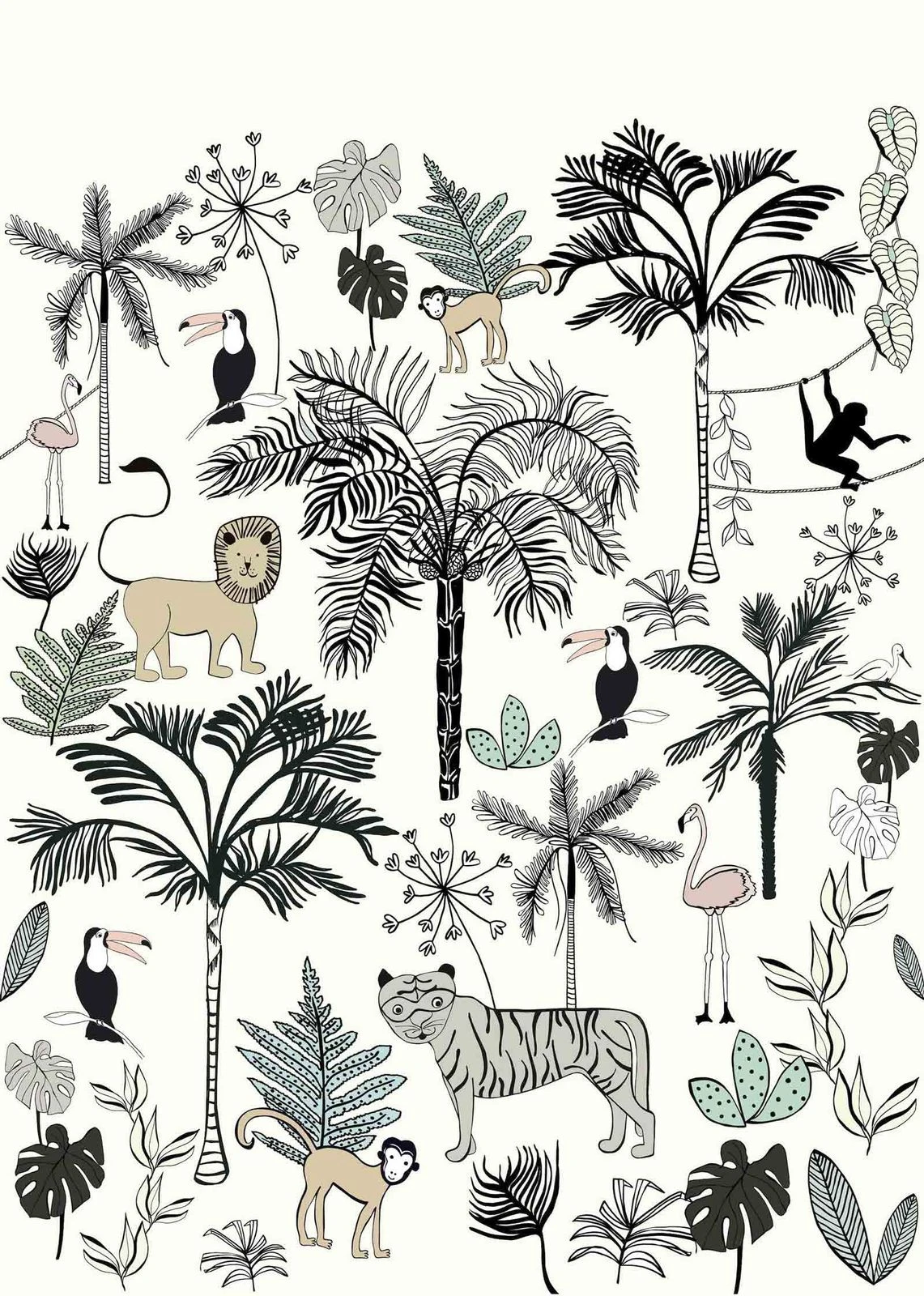 - Stilwelten: Dschungeltiere mit Löwen, Affen, Tiger und Flamingos, weiß, hellblau, schwarz, rosa