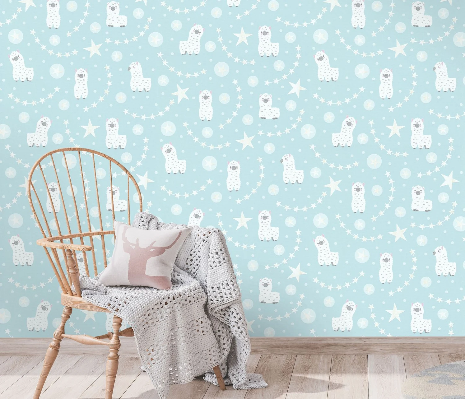 Entdecken Sie die Kindertapeten der Kollektion „Sweet and Cool“ von Erismann. Fröhliche Farben und coole Motive lassen Einrichtungsträume von klein und groß wahr werden. So bezaubern Motive wie Feuerwehr- und Polizeiautos, süße Alpakas oder coole Skateboarder die Wände jedes Kinderzimmers und lassen Raum für Fantasie. Darüber hinaus überzeugen die Tapeten mit guten Materialeigenschaften. So sind sie sehr wischbeständig und lassen sich trocken abziehen. Die Tapete 10161-18 zeigt ein Alpaka-Motiv in Türkis mit Glitzer.