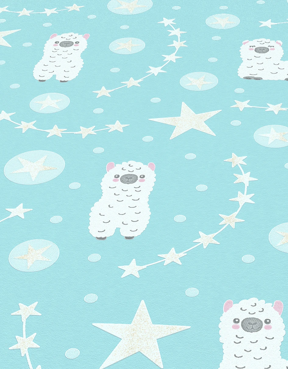 Kindertapete 10161-18 aus der Kollektion Sweet and Cool von Erismann mit Alpaka-Motiv in türkis mit Glitzer