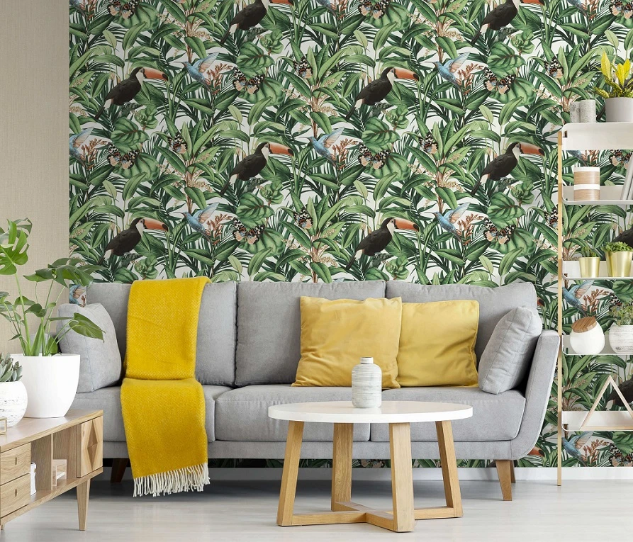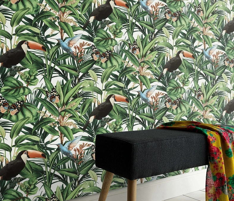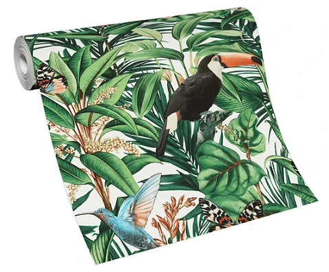 Tapete Vlies 10121-07 Blätter Dschungel Weiß Grün Schwarz