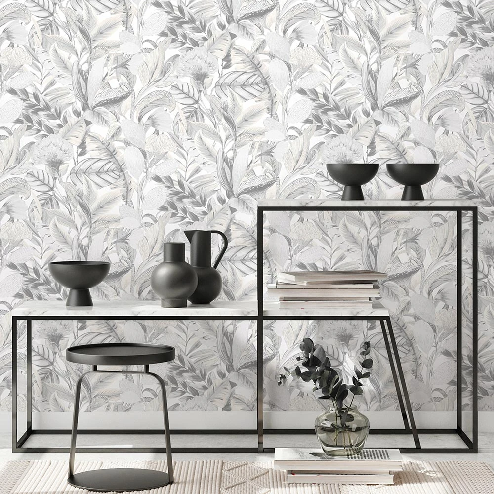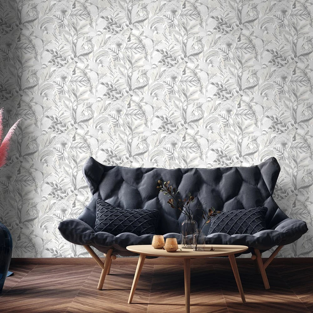 Tapete Vlies ELLE Blumen Floral Grau Weiß 10202-10