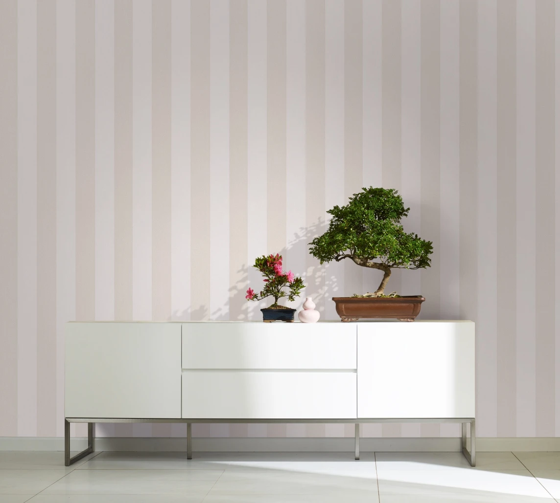 Novamur bietet mit den Vliestapeten aus der Kollektion „Hailey“ eine Mischung aus verschiedenen Mustertapeten und Uni-Designs. Die Tapete 82260 mit Blockstreifen in beige und weiß verziert dezent deine Wände und verleiht deinem Zuhause einen liebevolle Charme.