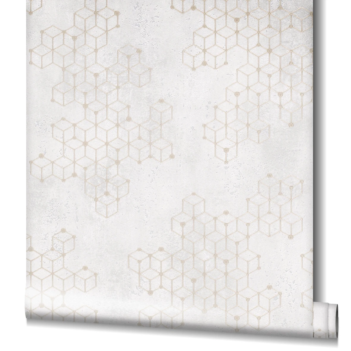 Tapete Vlies Würfel Putz grau gold Glanz Novamur Hailey 82243