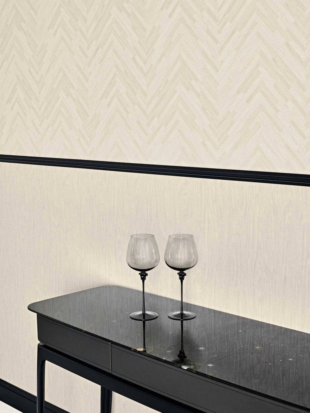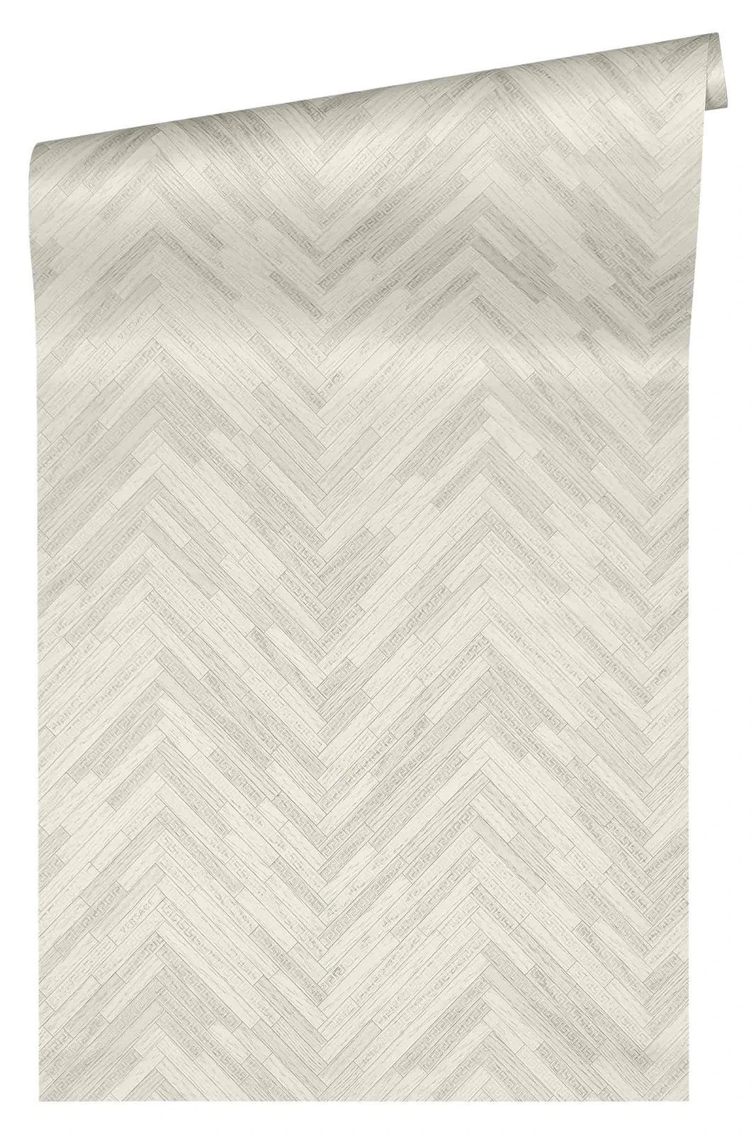 Versace Home IV Vinyltapete Ornamente Fischgrät grau creme Glanz 370511 | 37051-1