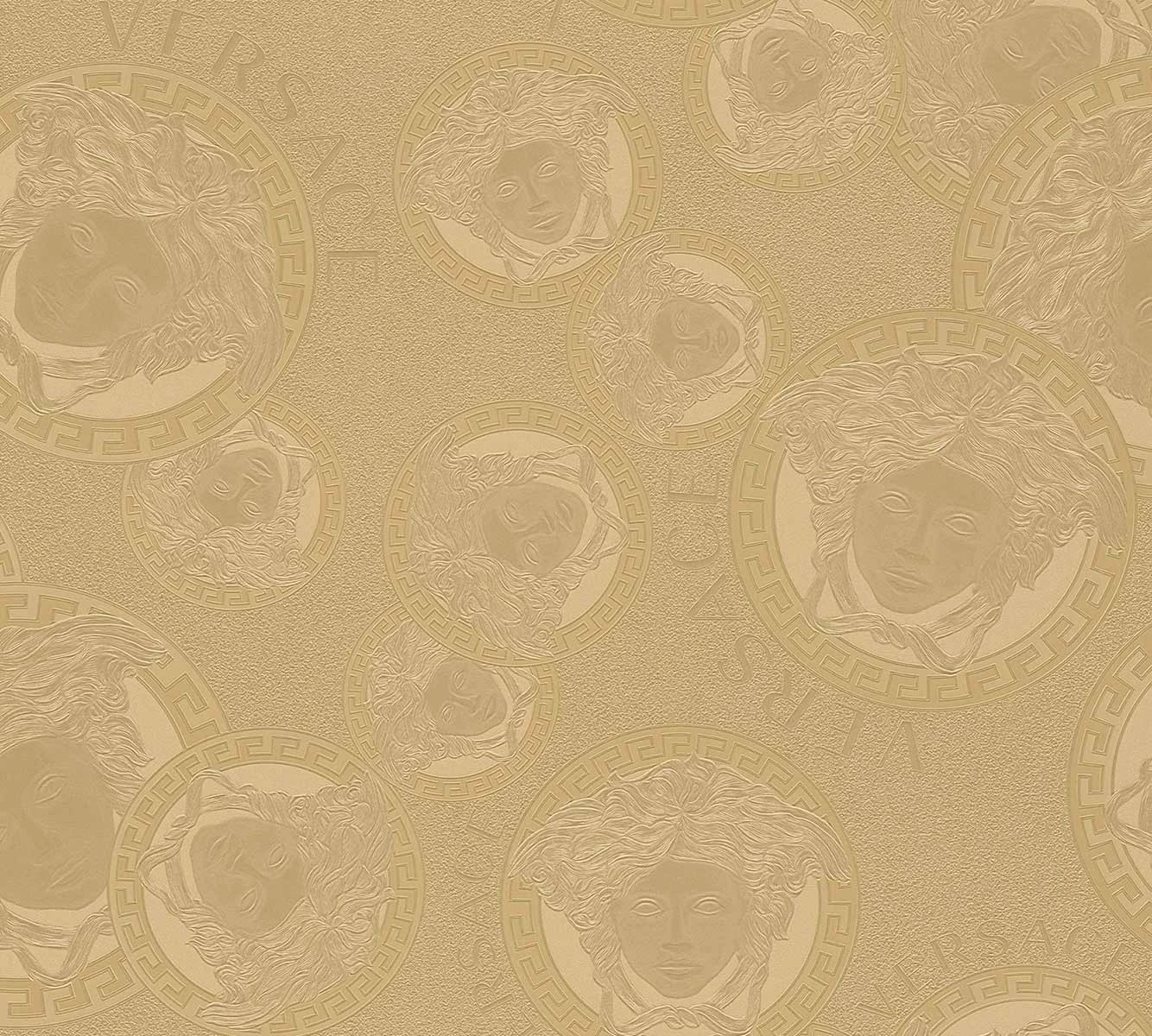 Mit den Vliestapeten der Versace Home 5 Kollektion bringen Sie den einzigartigen Stil der Luxusmarke Versace an Ihre Wände. Die Tapeten zeigen typische Versace Motive wie Medusaköpfe oder Mäandermuster. Aber auch schlichte Uni-Tapeten können Sie hier finden. Die Tapete 38461-1 in Gold besticht durch ein Medusa-Kopf Motiv. Lassen Sie sich von den Versace Home Tapeten überzeugen und entdecken Sie die komplette Kollektion bei uns im Shop.
